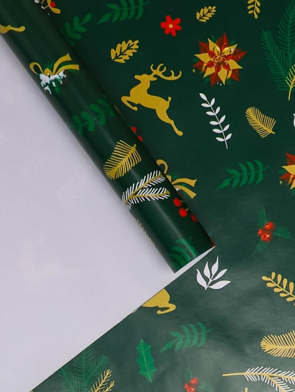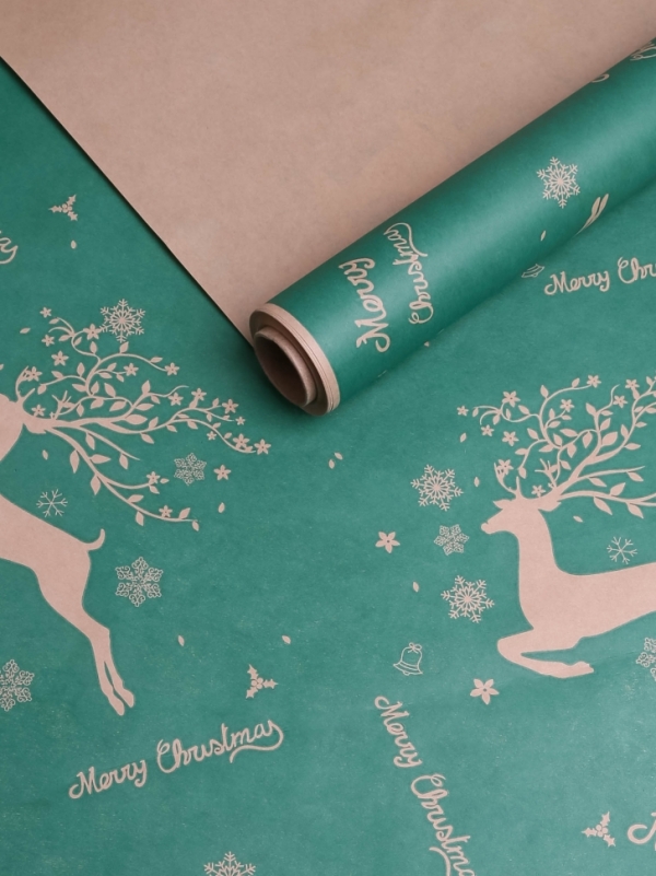 Бумага 0.7х10 м Крафт НГ "Олени бегущие, зеленый" |