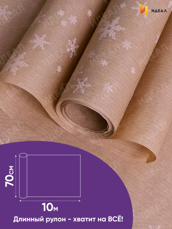 Бумага 0.7х10 м Крафт НГ "Снежинка, белый" |