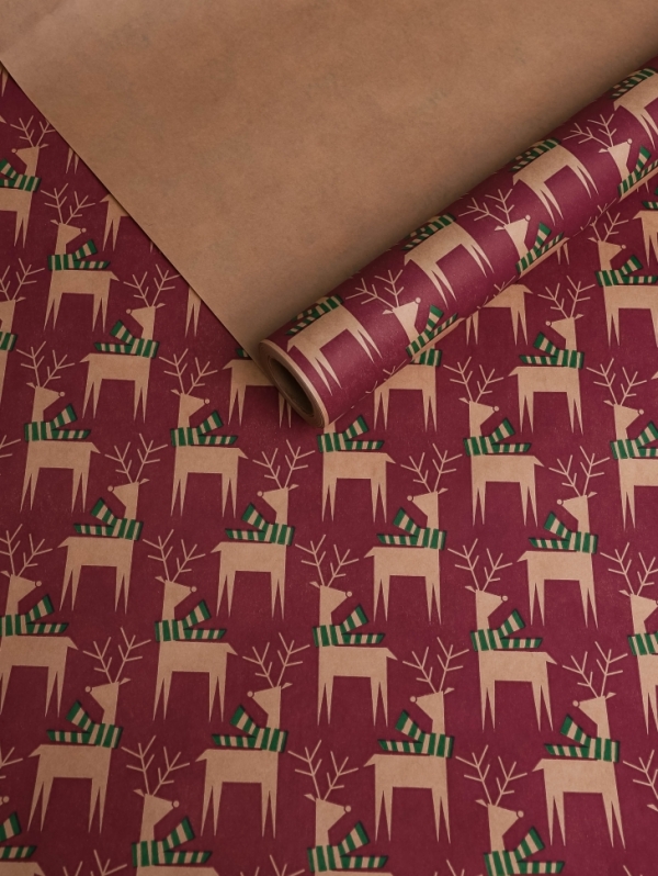 Бумага 0.7х10 м Крафт НГ "Олени с шарфиком" |