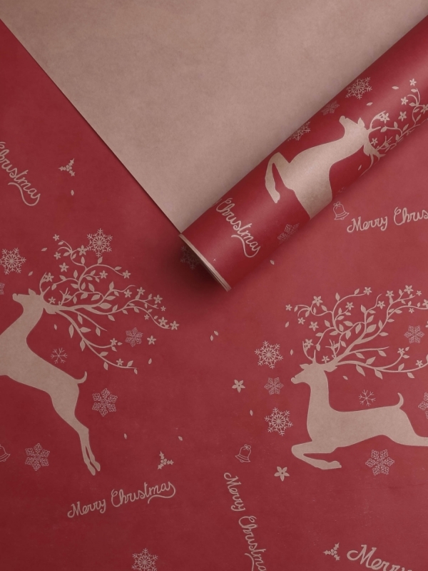 Бумага 0.7х10 м Крафт НГ "Олени бегущие, ягодный пунш" |