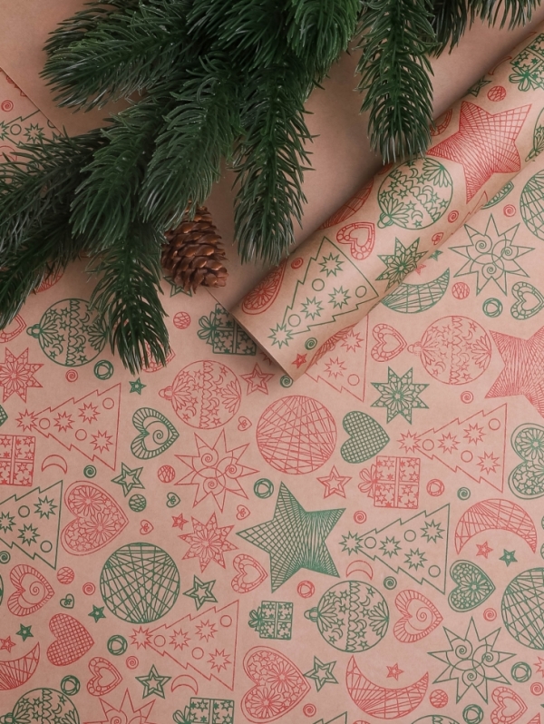 Бумага 0.7х10 м Крафт НГ "Новый год зеленый/красный" |