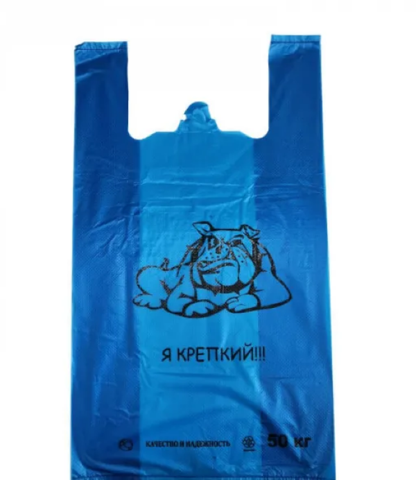 Пакет майка 30х55 Я крепкий синий (100/1000) |