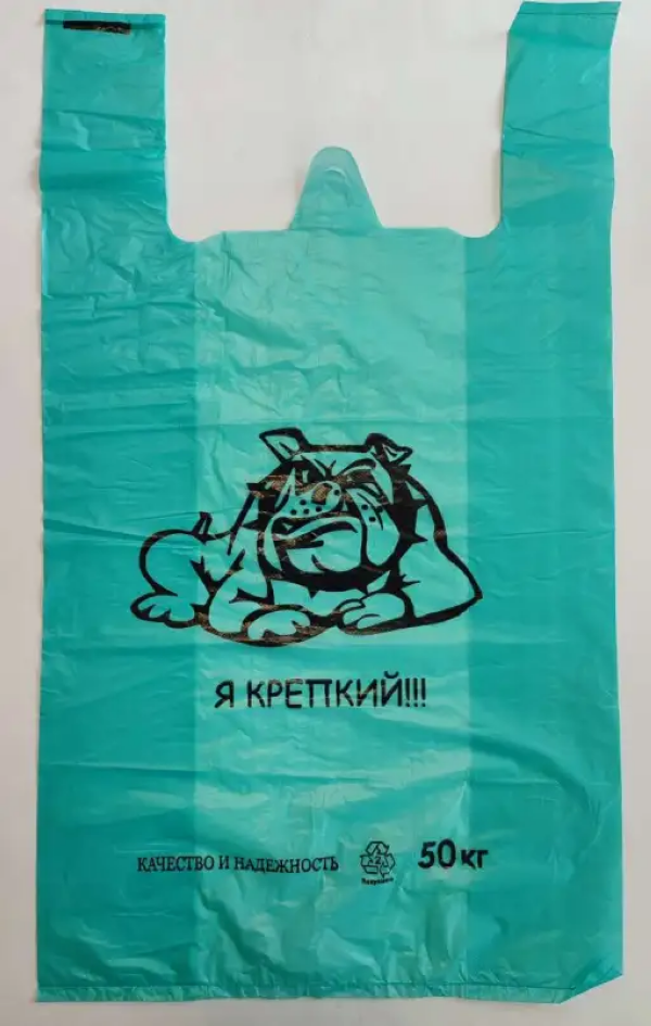 Пакет майка 30х55 Я крепкий бирюза (100/1000) |