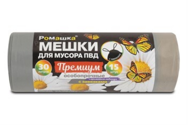 Пакет для мусора 50х60 30 л. / 30 шт. черный Р Премиум арт. НМ303030Э 7.3 мкм (1/30) |