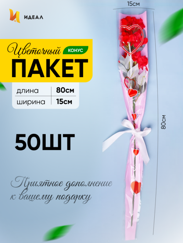 Пакет цветной металлизированный с белым рисунком 50х70 Тюльпан (50) |